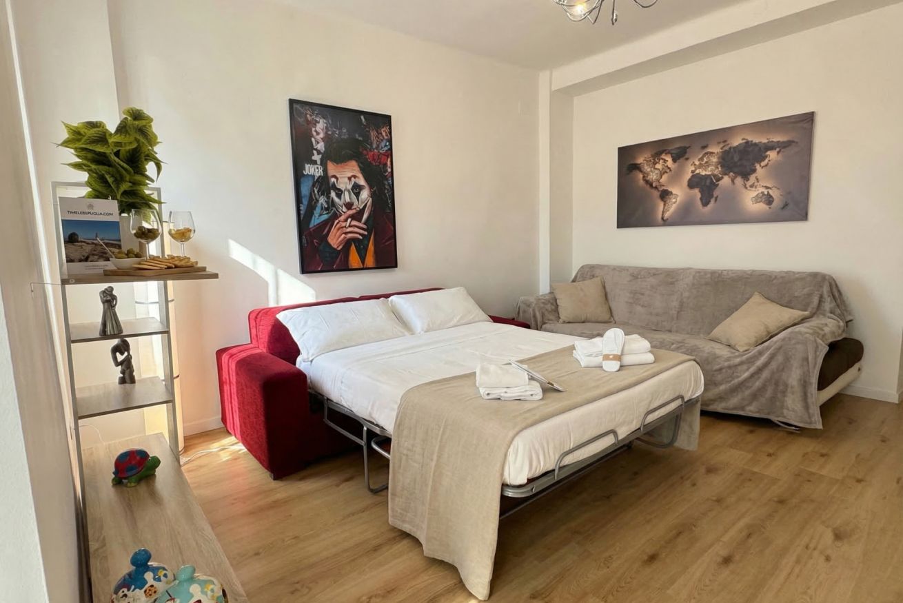 Discover the vibrant charm of Bari Home, a stylish second-floor retreat perfect for up to eight guests. Featuring three comfortable bedrooms, a modern bathroom, and a bright, multi-functional living area with a sofa bed, this residence blends comfort with contemporary design. Enjoy air conditioning, a fully equipped kitchen, and a peaceful atmosphere. Situated just minutes from the city's heart, this property is the ideal base for your unforgettable Italian getaway to Bari.