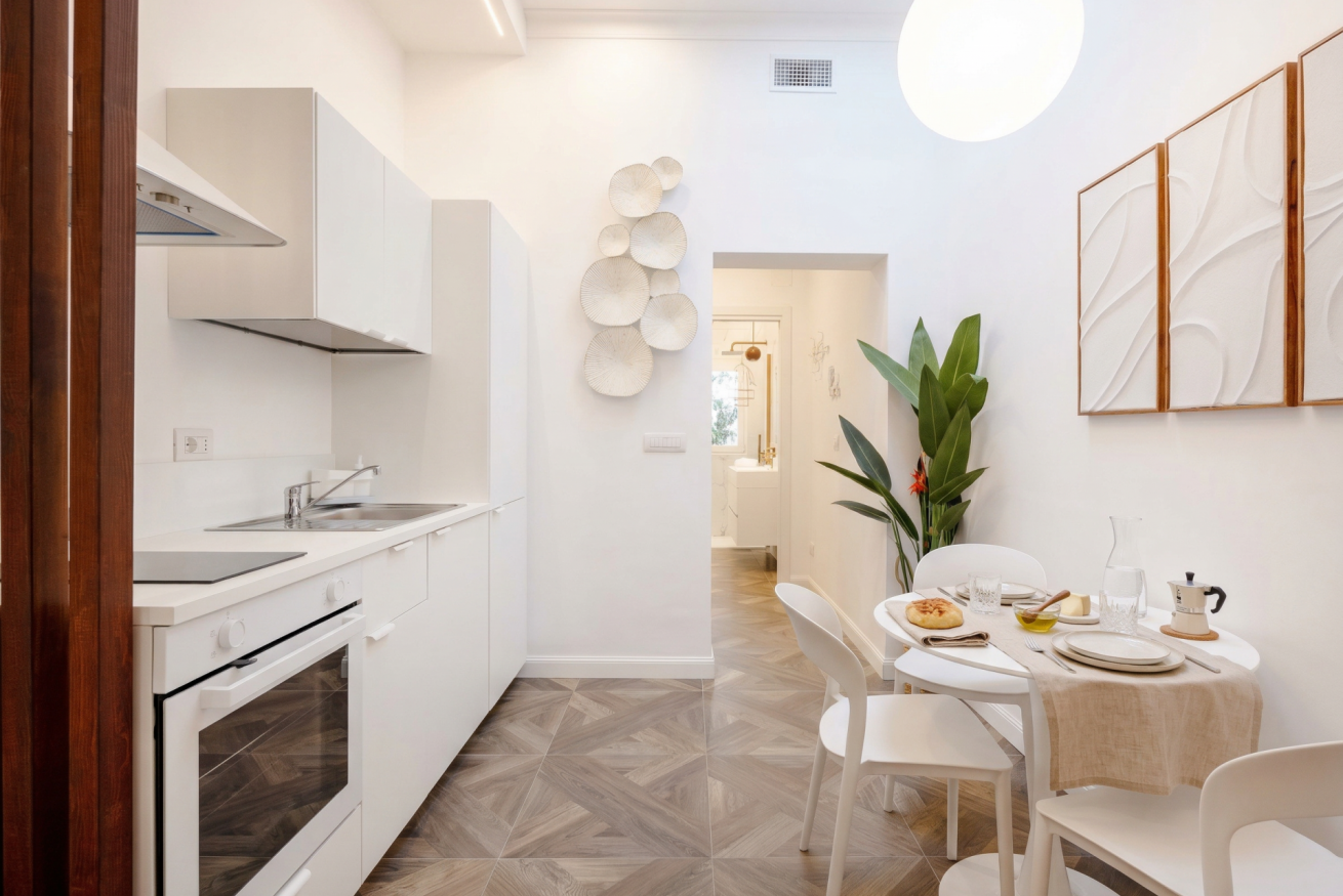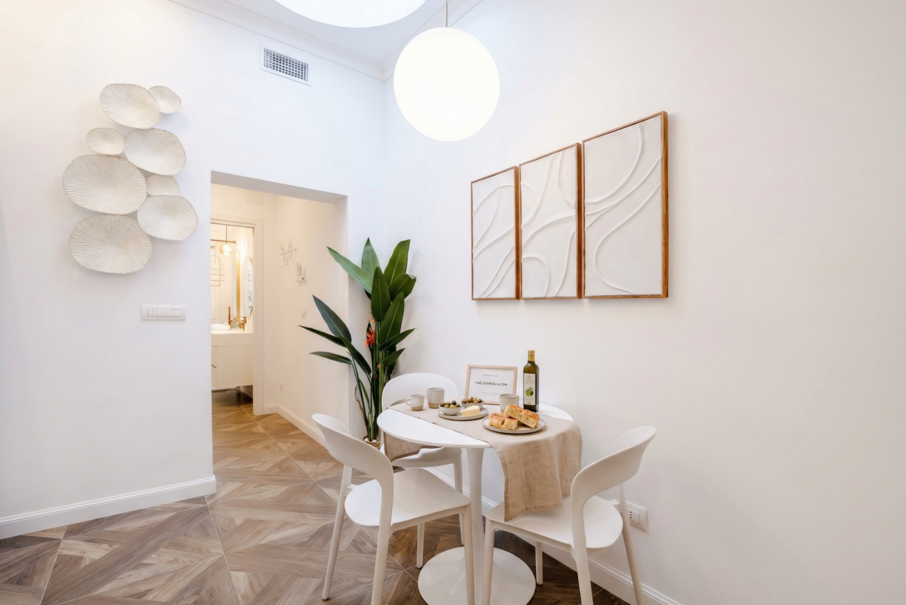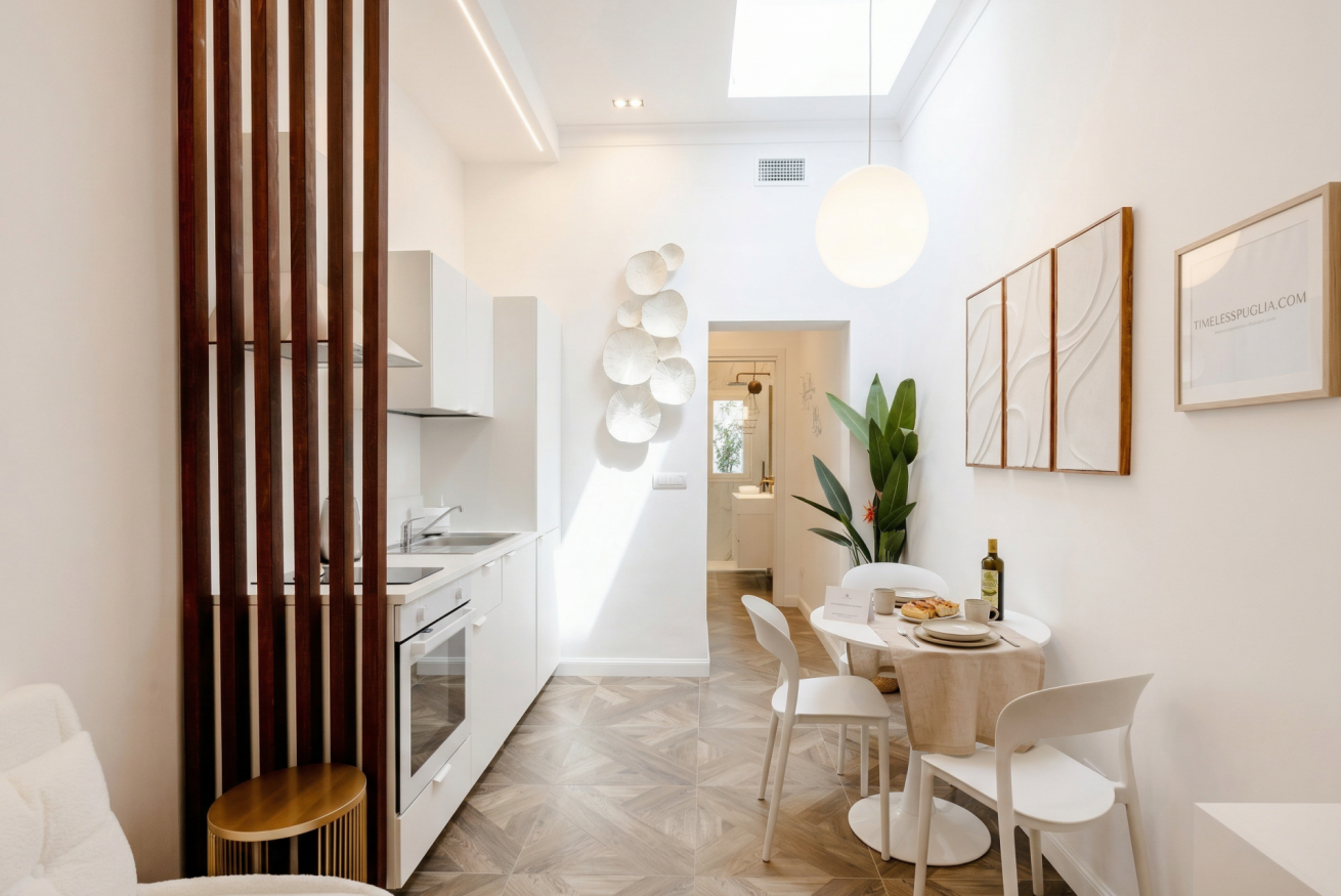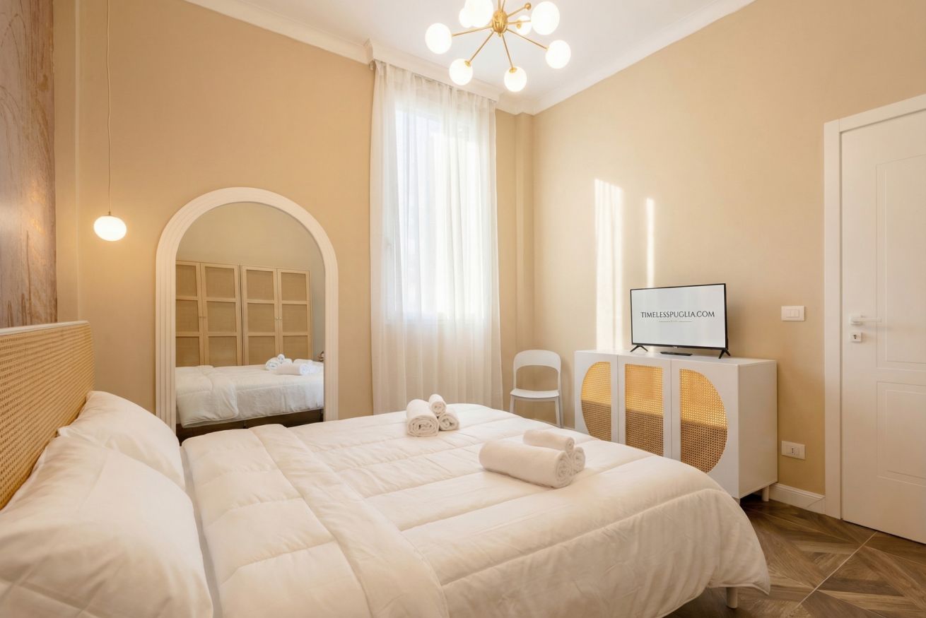 Discover the perfect blend of modern luxury and urban convenience at Bari Station Apartment. Situated just 1.1km from the city center, this elegant one-bedroom sanctuary offers a sophisticated escape. Featuring a high-end kitchen, serene bedroom with rattan accents, and a marble-clad bathroom, every detail is crafted for comfort. Enjoy seamless self-check-in, air conditioning, and a stylish open-concept layout that feels like your private boutique retreat in the heart of Puglia.