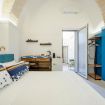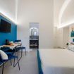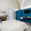 Blu - Serena and raffinata, the Camera Blu brings inspiration from the Adriatic Sea. Toni Freddi, morbide texture and minimalist design created a brilliant refuge next to the historic coast of Bari.