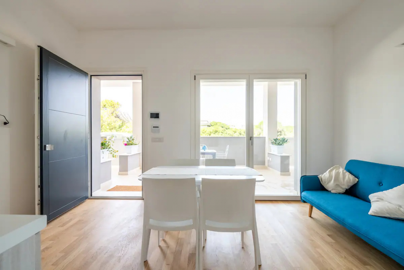 Enjoy a unique stay in this luxurious, newly renovated apartment, just 10 minutes from the city center by car or public transport. The apartment features a fully equipped kitchen, a cozy living area with a sofa bed, a spacious master bedroom with an en-suite bathroom, and a second bathroom. The outdoor patio with chairs and a table is perfect for enjoying sea views. Additional amenities include a private parking space and modern design.Book now for a relaxing and unforgettable experience in Bari