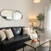 Ogni angolo della proprietà è stato curato per creare un ambiente rilassante, unendo un design minimalista a comfort moderni e funzionali. La zona giorno open space è il cuore della casa, con un elegante divano in pelle nera, un tavolino in vetro e una sala da pranzo in legno perfetta per momenti conviviali. Inondata di luce naturale grazie alle tende leggere e raffinate, l’atmosfera è ariosa e accogliente.
