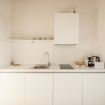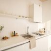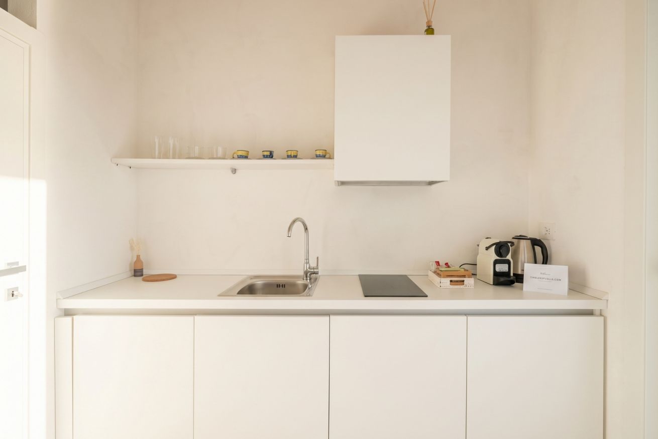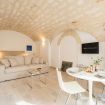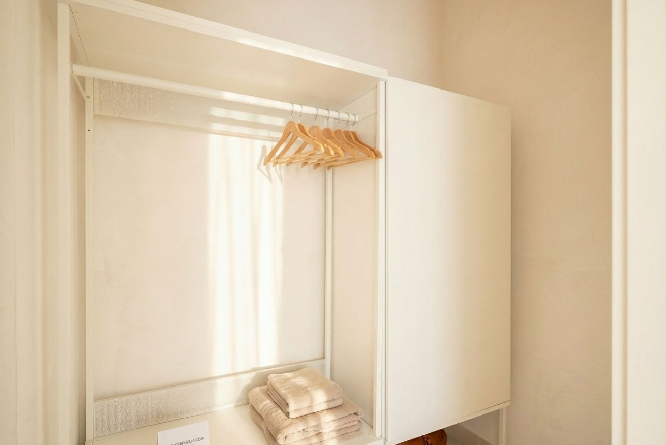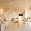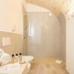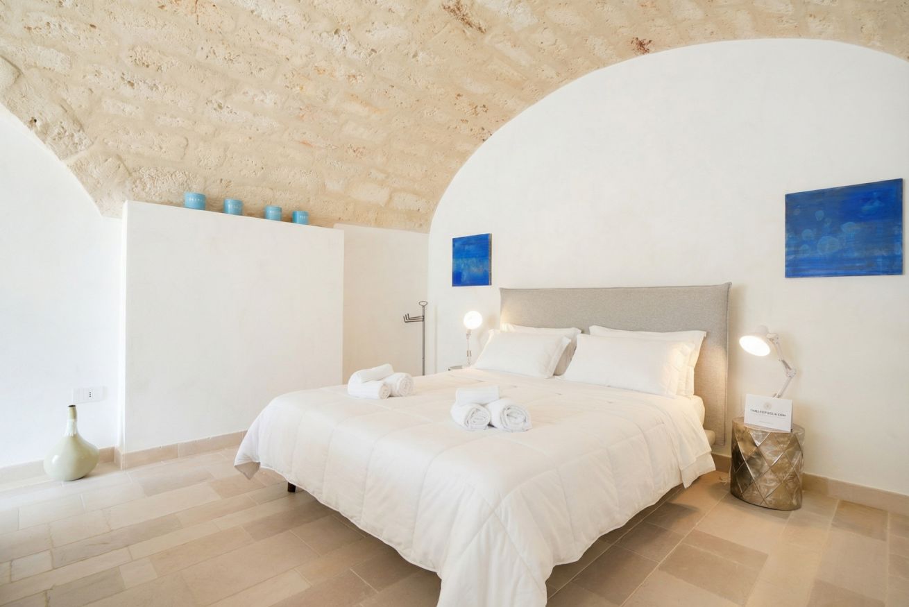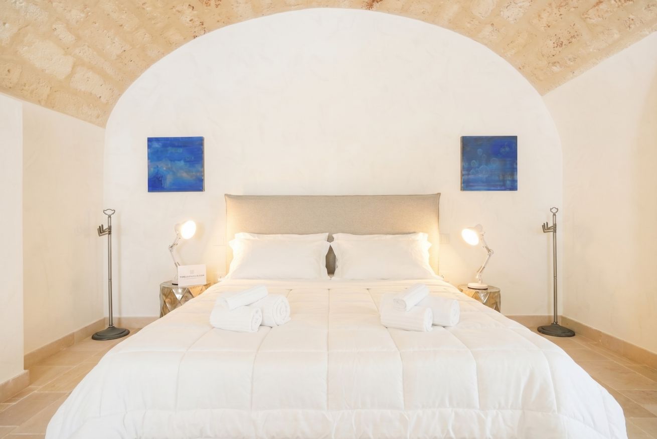 Escape to the timeless beauty of the Italian coast with a stay at Palazzo della Torre 001, an exquisite sanctuary located just outside the vibrant heart of Bari. This sophisticated property serves as the perfect base for travelers looking to balance the cultural energy of the city with the peaceful, airy atmosphere of an authentic Puglian dwelling. From the moment you step inside, you are greeted by the striking, iconic vaulted tuff stone ceilings that define the architecture of this region, paired beautifully with light, neutral tones and modern minimalist decor. The open-concept living space is bathed in natural light, offering a seamless flow between the elegant, beige-toned lounge area and the minimalist dining space. Large glass sliding doors invite you out onto a private terrace, a quintessential spot for savoring a local espresso or winding down after a day of exploration. The kitchen is designed with simplicity and efficiency in mind, featuring crisp white cabinetry, a seamless countertop, and essential amenities including an induction stovetop and coffee machine. Rest comes easily in the tranquil sleeping area, where a plush, grey-upholstered queen bed waits, accented by metallic side tables and tasteful, abstract blue art that reflects the coastal spirit. The ensuite bathroom is a true highlight, marrying raw historical character with modern luxury; it features a spacious, walk-in glass shower, a stone vessel sink, and warm LED-backlit mirrors. Every element of this home, from the cooling air conditioning to the thoughtful storage solutions, has been curated to ensure a seamless experience. Whether you are traveling for a romantic getaway or a serene retreat, this residence provides a unique blend of heritage and high-end comfort. Situated with convenient access to the wonders of Bari, this property invites you to slow down, breathe, and fully immerse yourself in the warm, welcoming pace of life in Italy.