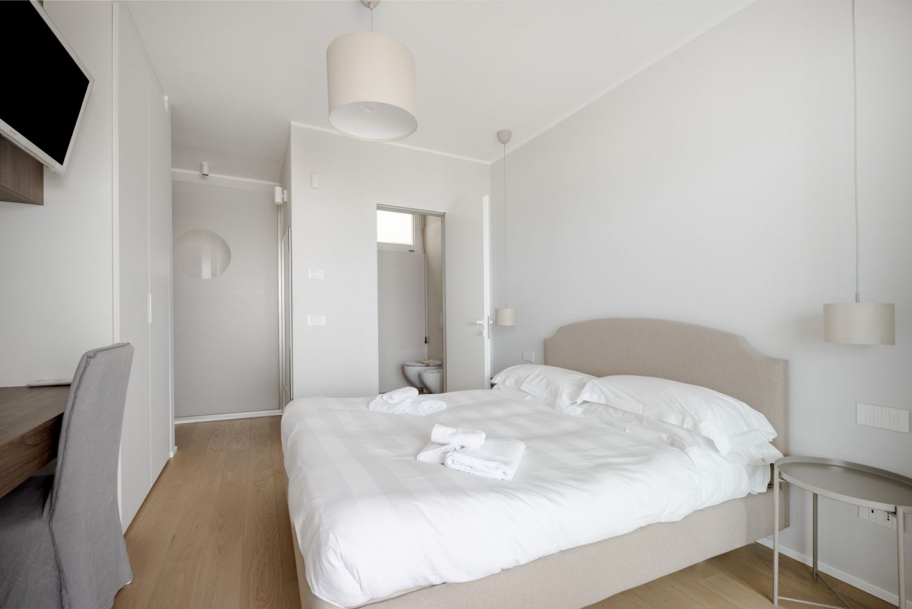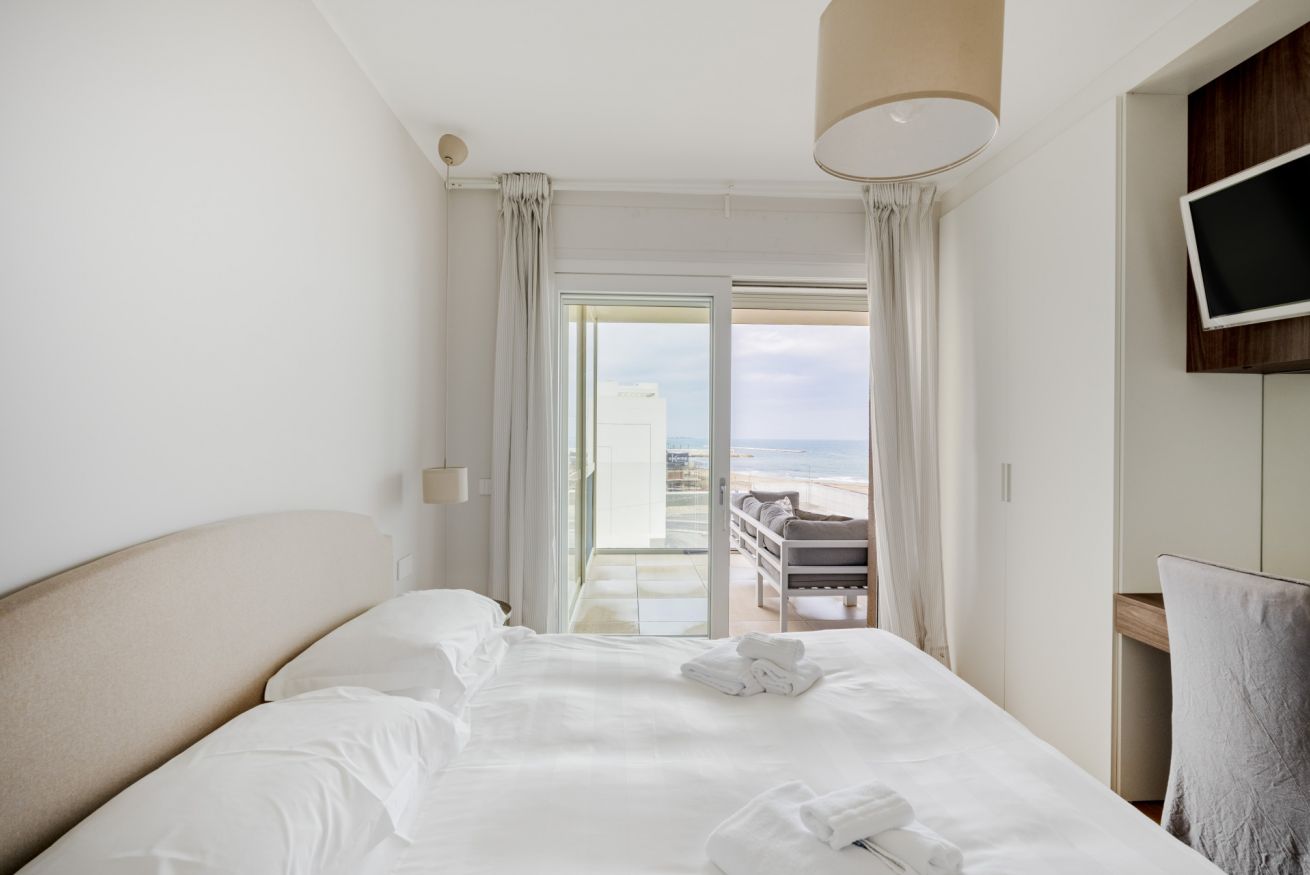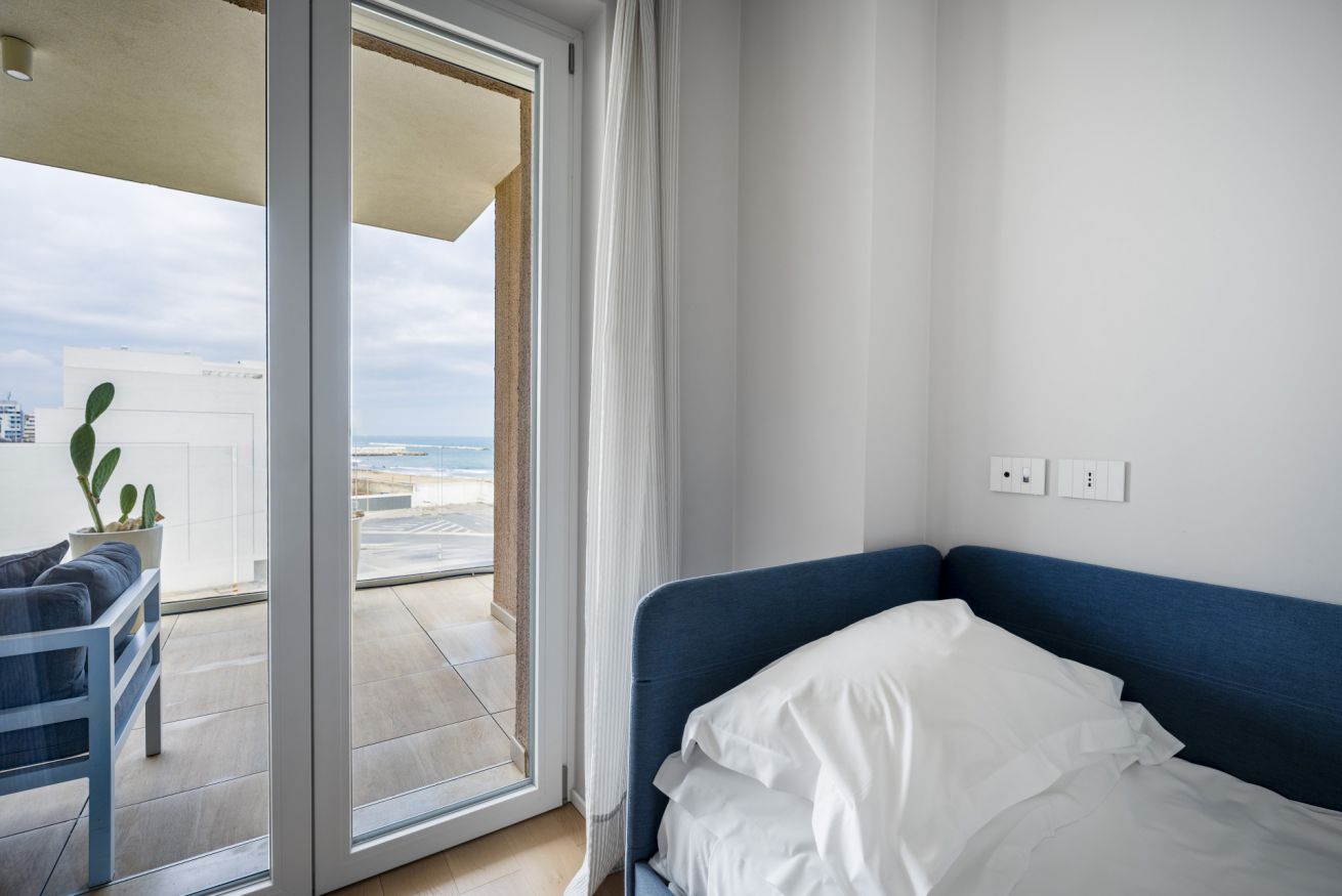 Wake up to light — soft, golden, and endless. Through wide glass doors, the Adriatic stretches out before you, calm and blue, whispering the rhythm of Bari’s coast.