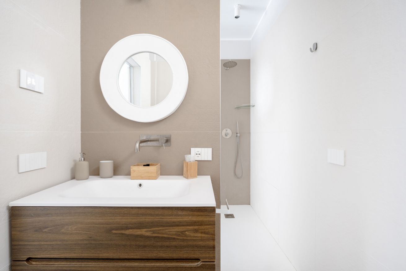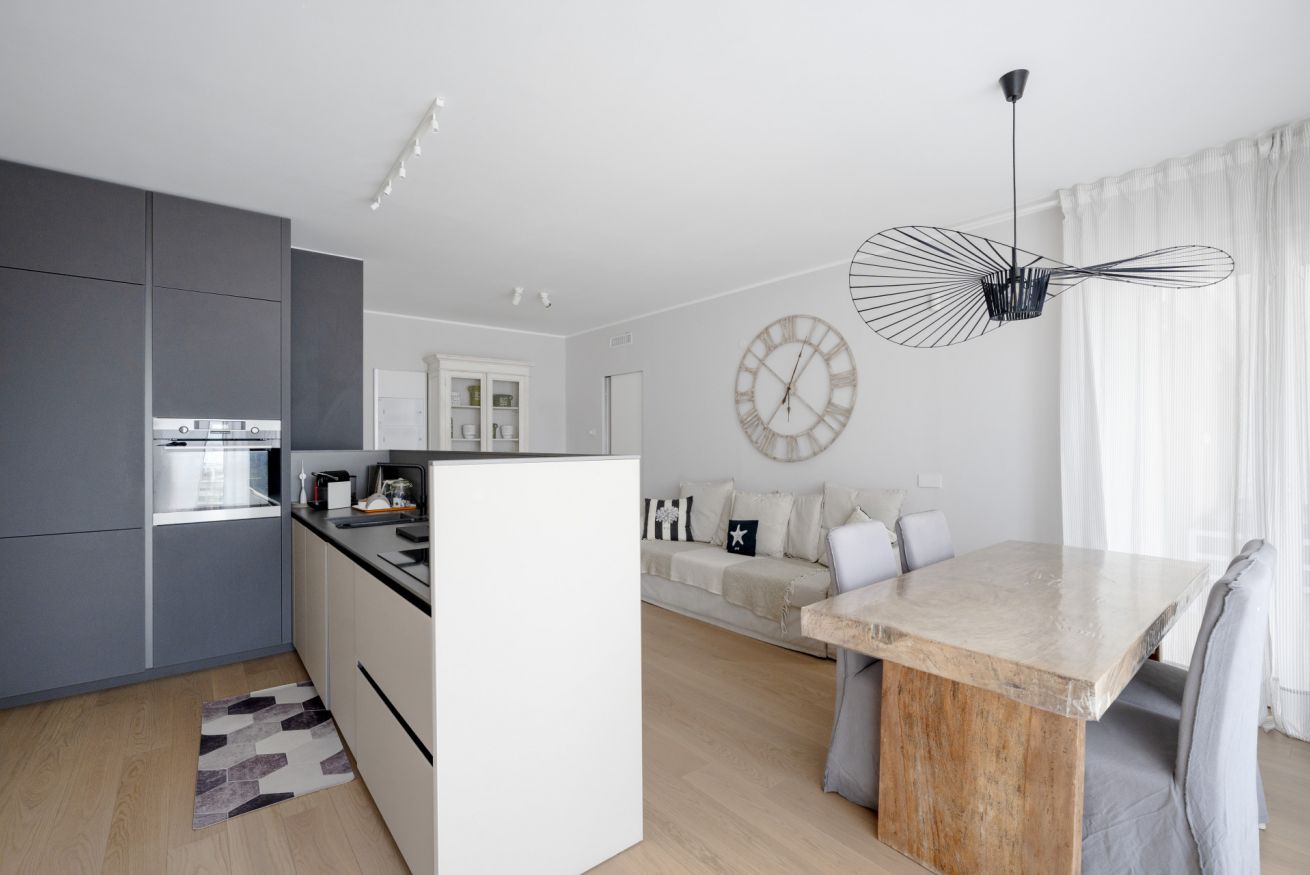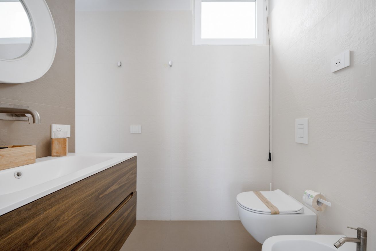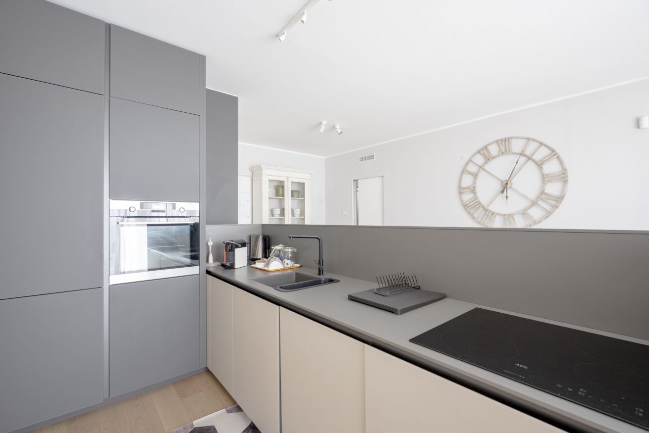 Inside, modern grace greets you: sleek lines, gentle tones, and spaces that breathe. Each room is bathed in daylight — a quiet symphony of white, wood, and warmth. The kitchen invites slow mornings with coffee and sea views; the living room calls for laughter and easy evenings.