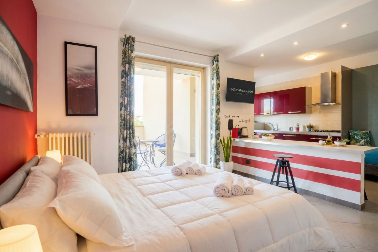 Vivi l’energia vibrante di Bari a SkyGate - Red, un elegante monolocale che unisce design moderno e massimo comfort. Situato a breve distanza dal centro città, questo spazio offre un rifugio unico dove colori decisi e funzionalità si incontrano con stile.