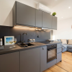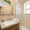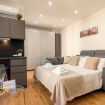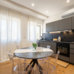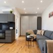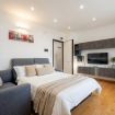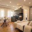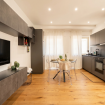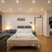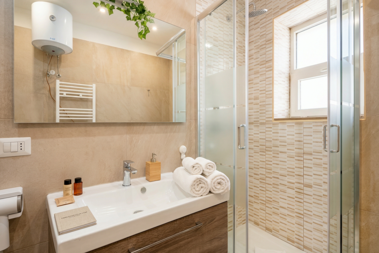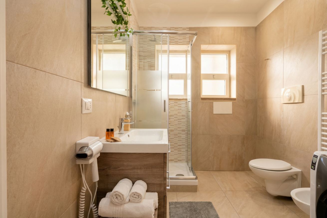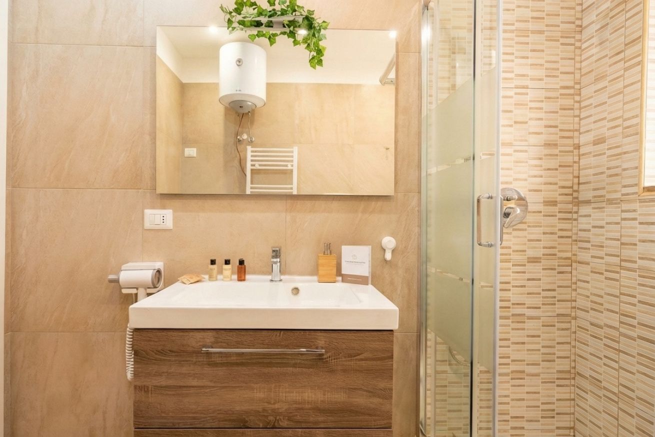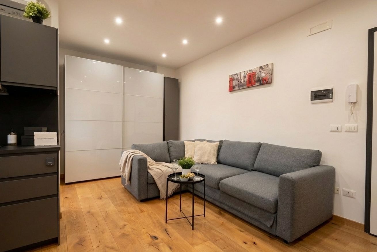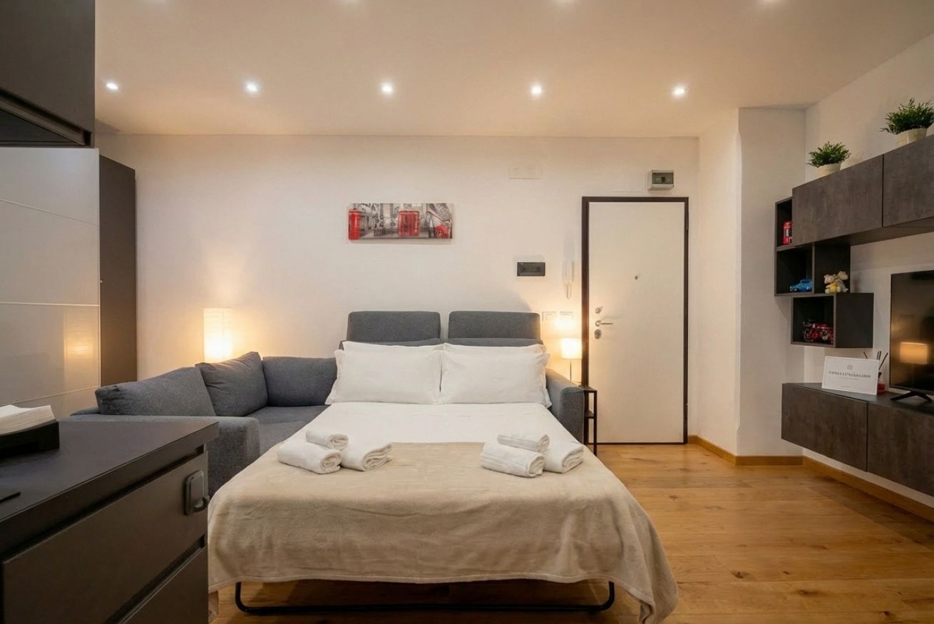 Experience the perfect urban retreat at Sparano Mood 170, a beautifully curated studio apartment located in the heart of Bari. This modern, first-floor residence offers a refined atmosphere, combining sleek design with the warmth of high-end materials. As you step inside, you are welcomed by an inviting open-plan layout that maximizes space and comfort. The living area features stunning light oak hardwood floors, recessed ceiling lighting, and contemporary grey furnishings, including a plush sofa bed with fresh, high-quality linens. A touch of personality is added by the distinct London-themed artwork, giving the space a unique and cosmopolitan character. The kitchen is a chef’s delight, outfitted with matte charcoal cabinetry and a full suite of modern appliances, including an integrated oven, induction hob, and refrigerator. It seamlessly flows into the dining area, where a sophisticated round table paired with iconic ghost chairs invites you to enjoy a morning coffee or a quiet evening meal. Every detail has been considered to ensure a relaxing stay, from the high-speed WiFi and air conditioning to the inclusion of a washing machine for your convenience. The bathroom is a true sanctuary, featuring warm, beige stone-look ceramic tiles, a modern glass-enclosed shower, and a wooden vanity cabinet accented with tasteful greenery. You will find all the essentials provided, including toiletries, a hairdryer, and plush towels for a spa-like experience. Located just a short distance from the city center, this home serves as the perfect base for your Italian adventures, allowing you to easily explore Bari’s rich culture, renowned restaurants, and historic streets. With seamless self check-in via secure key lockboxes, your arrival will be as smooth as your stay. Whether you are traveling for business or pleasure, the home offers an unparalleled combination of elegance, functionality, and central convenience that will make your visit to Italy truly memorable.