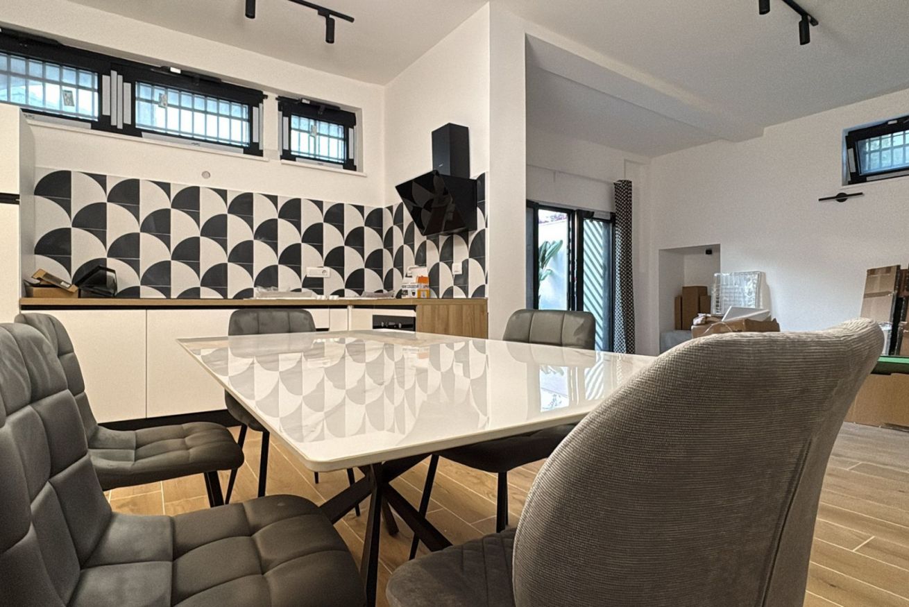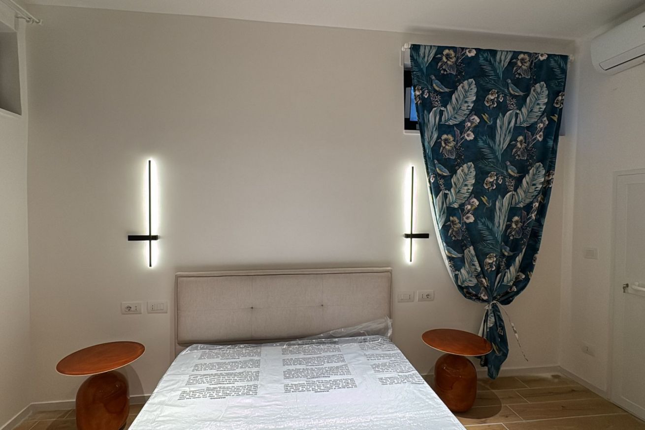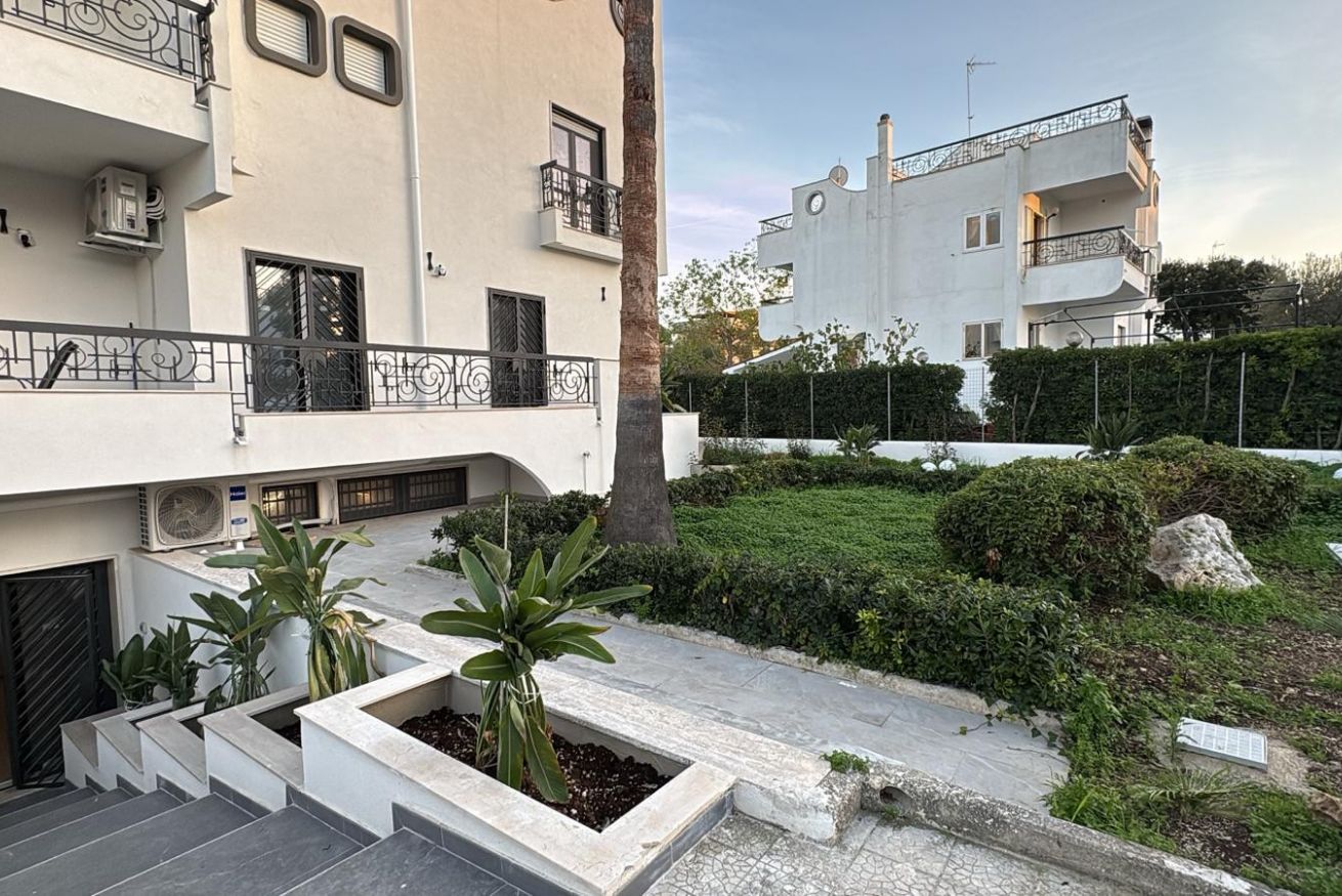 Discover the elegance of coastal living at Marevista Sunrise, a sophisticated two-bedroom apartment located in the serene enclave of Torre a Mare, Bari. Perfectly positioned for those who desire tranquility without sacrificing accessibility, this property offers an exclusive retreat just moments from the sparkling Adriatic Sea. As you step inside, you are welcomed by a light-filled, open-concept living space defined by minimalist aesthetics, high-quality wood-look flooring, and a sleek, fully equipped kitchen featuring matte white cabinetry and marble-effect finishes. The dining area, anchored by a sculptural chandelier and striking cobalt blue velvet chairs, creates an inviting atmosphere for evening meals. Retreat to one of the two modern bedrooms, each meticulously curated with premium linens, dedicated workstations, and smart storage solutions, ensuring both comfort and convenience for up to six guests. The bathroom is a true sanctuary, boasting high-end marble-effect tiling, a walk-in shower, and heated towel racks. What truly sets this residence apart is its expansive private terrace and vibrant garden. Whether you are enjoying your morning coffee under the white pergola, relaxing on the terracotta-floored deck while watching the sunset, or strolling through the manicured lawn framed by lavender and hedges, the outdoor living experience is unmatched. For guests traveling by vehicle, the property provides the rare benefit of a free, secure parking spot for up to two cars within a closed community, adding a layer of peace of mind to your stay. With high-speed WiFi, air conditioning, and professional design touches throughout, every detail has been considered to provide a premium experience. Whether you are in town for business or a long-awaited seaside vacation, this modern gem serves as the ultimate base for exploring the rich culture and stunning coastline of the Puglia region, combining the comforts of home with the charm of an Italian getaway.
