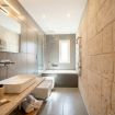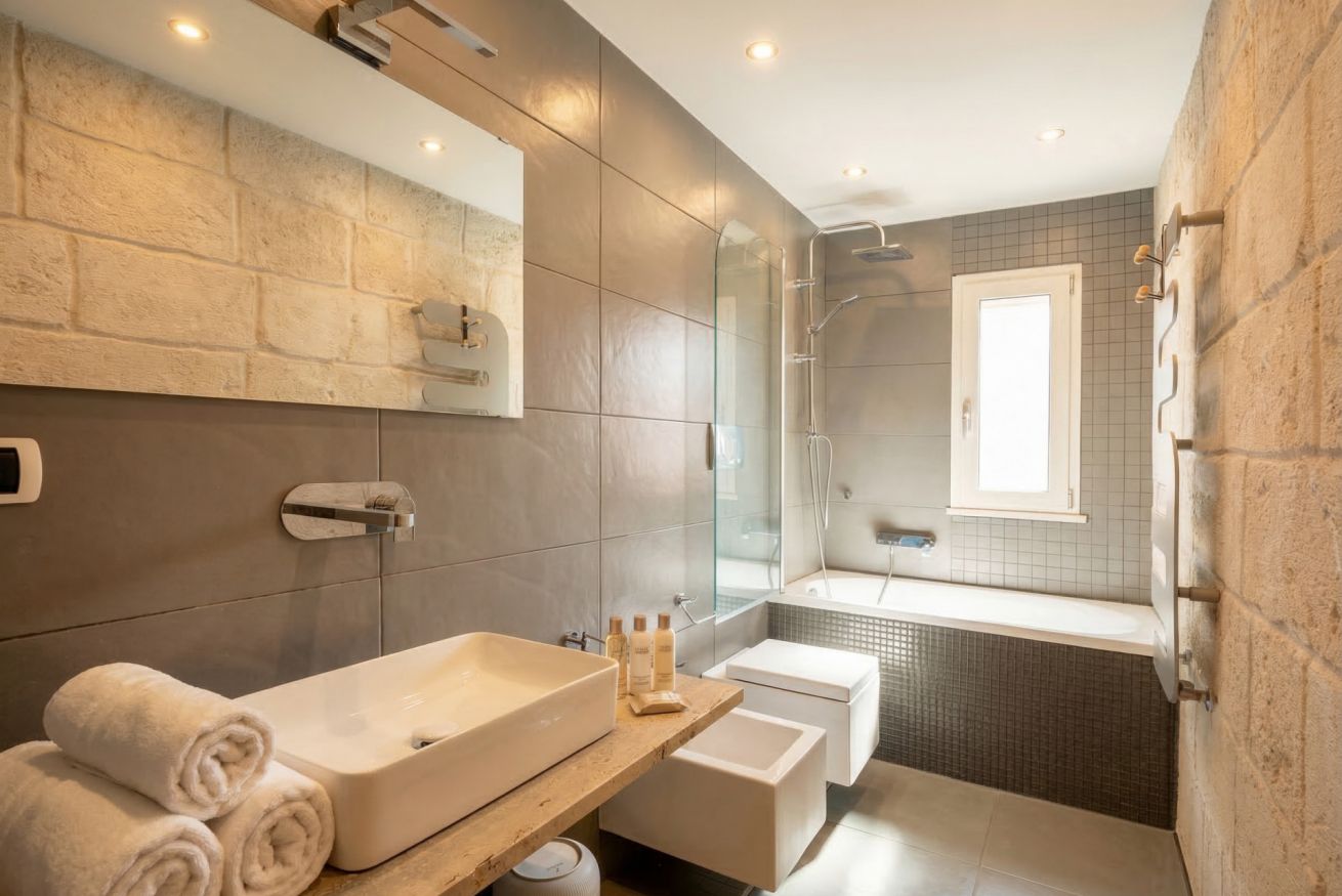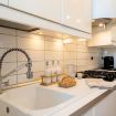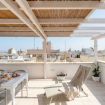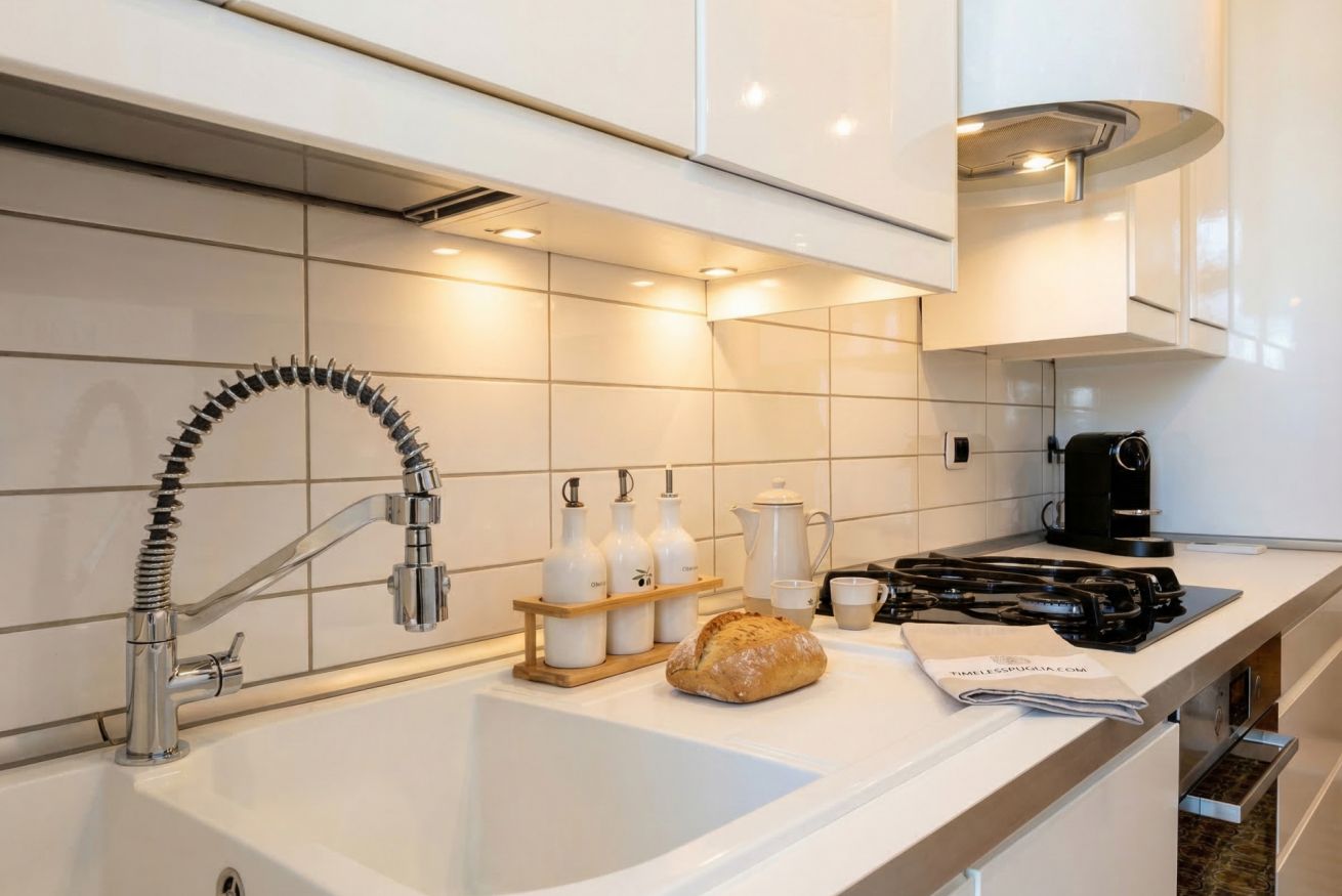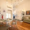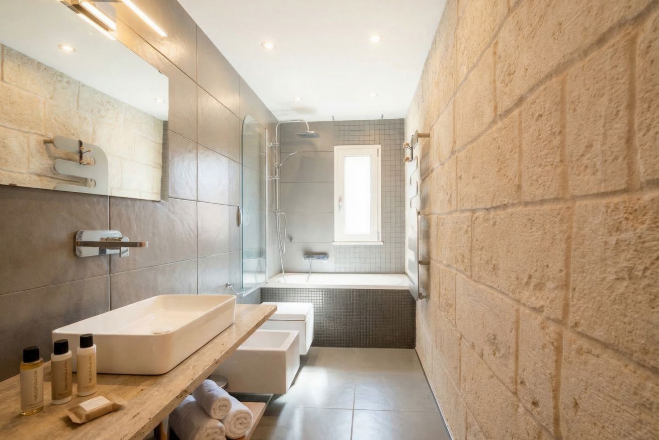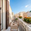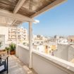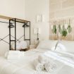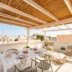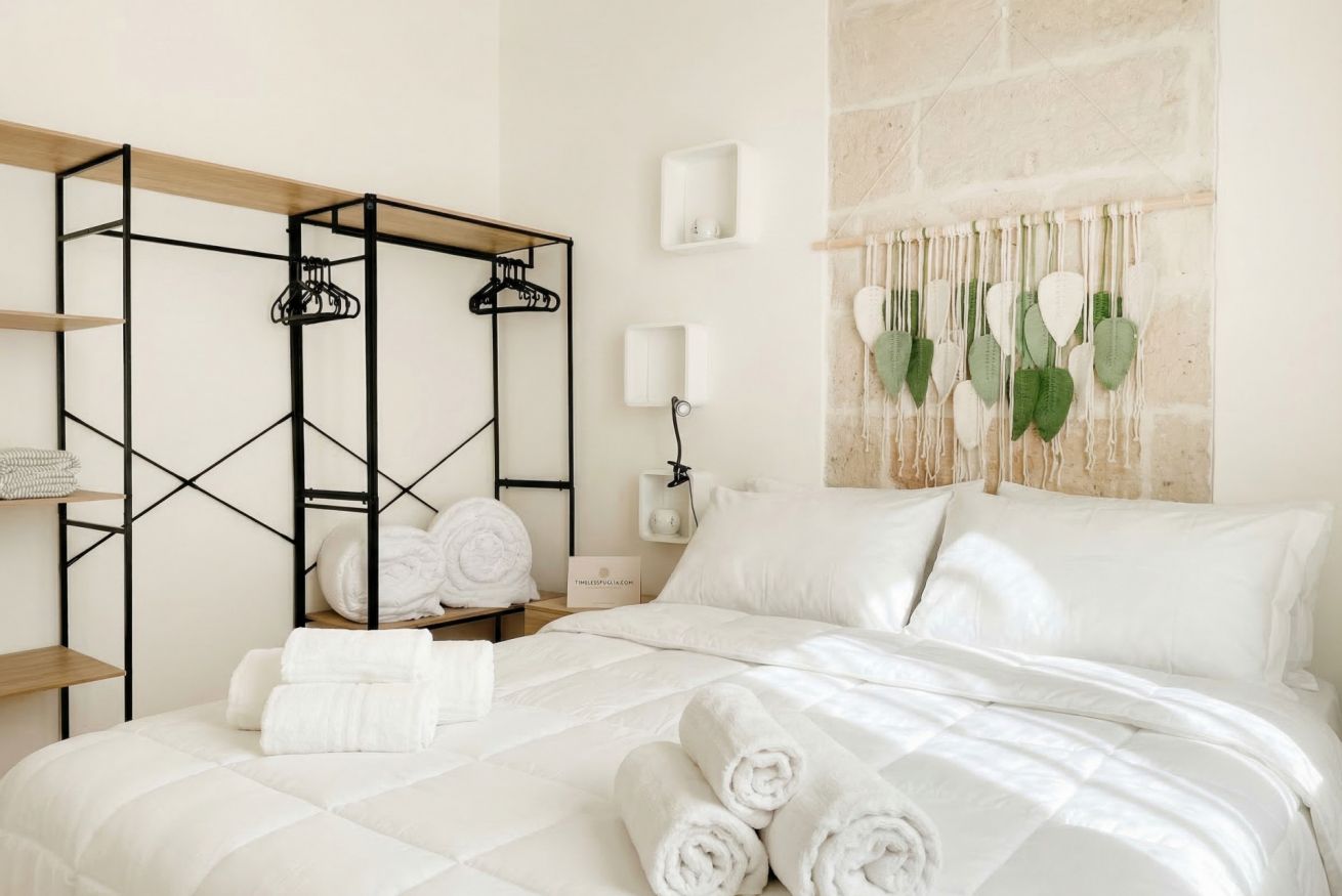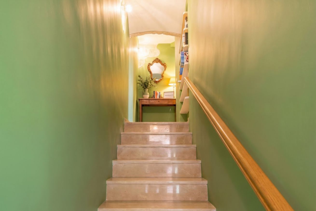 Experience the quintessential charm of Monopoli at Terrazza San Martino, an elegant one-bedroom apartment that perfectly captures the spirit of Puglia. Located on the first floor of a traditional building, this property serves as a sophisticated urban retreat designed for guests who appreciate thoughtful aesthetics and comfort. Upon entering, you are welcomed by an atmosphere of refined warmth, where historic exposed limestone walls meet sleek, modern high-gloss finishes and rich wooden flooring. The heart of the home is the open-plan living and dining area, featuring a sage green sofa bed and a round dining table that seats four, making it an ideal space to unwind after a day of exploration. The fully equipped modern kitchen, complete with a commercial-style faucet and artisanal patterned tile flooring, provides everything needed to prepare fresh Mediterranean meals. The bedroom is a tranquil oasis, highlighting a natural stone wall and soft, inviting linens, ensuring a peaceful night's rest. The bathroom is a true highlight of the home, boasting contemporary luxury through its blend of oversized matte grey tiles and authentic rustic stone, complete with a soothing bathtub-shower combination. The crown jewel of this residence is undoubtedly the expansive rooftop terrace. Shaded by a rustic bamboo pergola, this private outdoor sanctuary offers panoramic views of the city skyline, making it the perfect setting for morning coffee or sunset dinners under the stars. Adorned with vibrant flowering planter boxes and chic outdoor furniture, the terrace invites you to relax in the sun on provided loungers or enjoy al fresco dining in the crisp sea air. Every detail, from the vibrant abstract art to the carefully curated decor, has been chosen to provide a memorable stay. Whether you are walking through the narrow, picturesque streets of Monopoli or enjoying a quiet evening on your private terrace, this property offers a seamless blend of convenience and luxury