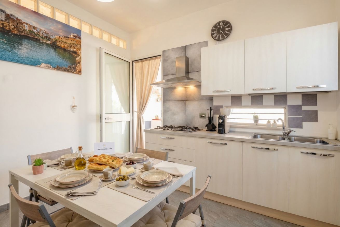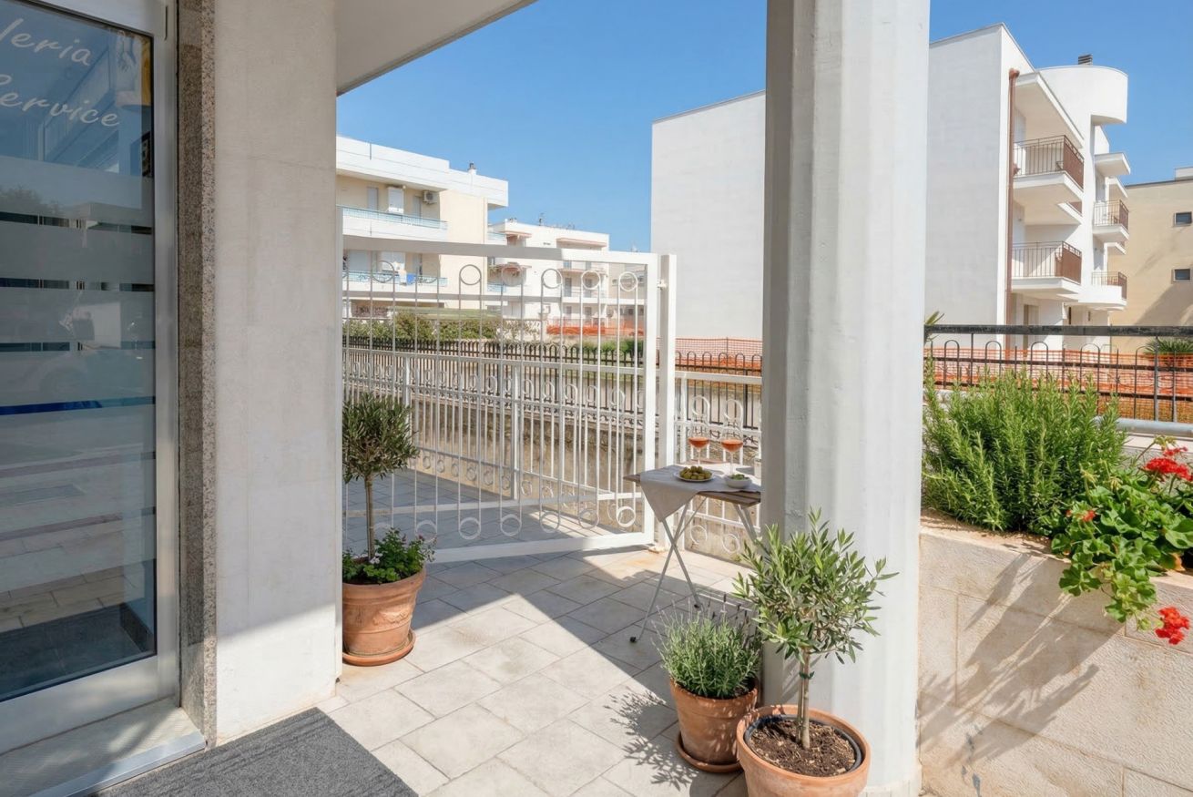 Experience the authentic spirit of Polignano a Mare at Carmen-Central Accommodation with Patio, a sophisticated ground-floor apartment perfectly curated for your Italian escape. From the moment you arrive at this private entrance, you will feel the harmony of modern convenience and coastal charm. The property features two beautifully appointed bedrooms, each offering a serene sanctuary after a day spent exploring the Adriatic cliffs. With crisp linens, soft quilted bedspreads, and thoughtful design elements, every detail ensures a restful night’s sleep. The living spaces are bright and airy, with elegant touches like glass block accents and tasteful decor that reflect the serene beauty of the region. The modern galley-style kitchen is a delight for food lovers, equipped with high-end appliances, a gas stove, and a chic dining area adorned with coastal artwork, providing everything you need to whip up a fresh local meal. The heart of this home is undoubtedly its stunning covered terrace, which serves as a private oasis. Featuring vibrant artificial turf, a solid wooden dining set, and a deep-cushioned outdoor lounge, this space invites you to linger over morning coffees or evening wine under the Mediterranean sky. Thoughtful inclusions like a modern bathroom with a glass-enclosed shower, air conditioning, and high-speed WiFi ensure that your stay is as comfortable as it is memorable. Whether you are reclining on the outdoor sofa surrounded by lush planters or exploring the nearby historic center and famous beaches of Polignano a Mare, this property provides the perfect base. With seamless self-check-in and a secure, modern layout, guests can enjoy total independence and peace of mind. Every inch of this home has been designed to make you feel completely at ease, offering a high-end, intimate atmosphere that elevates your travel experience. Immerse yourself in the local culture while enjoying the privacy and sophisticated design of this exceptional apartment