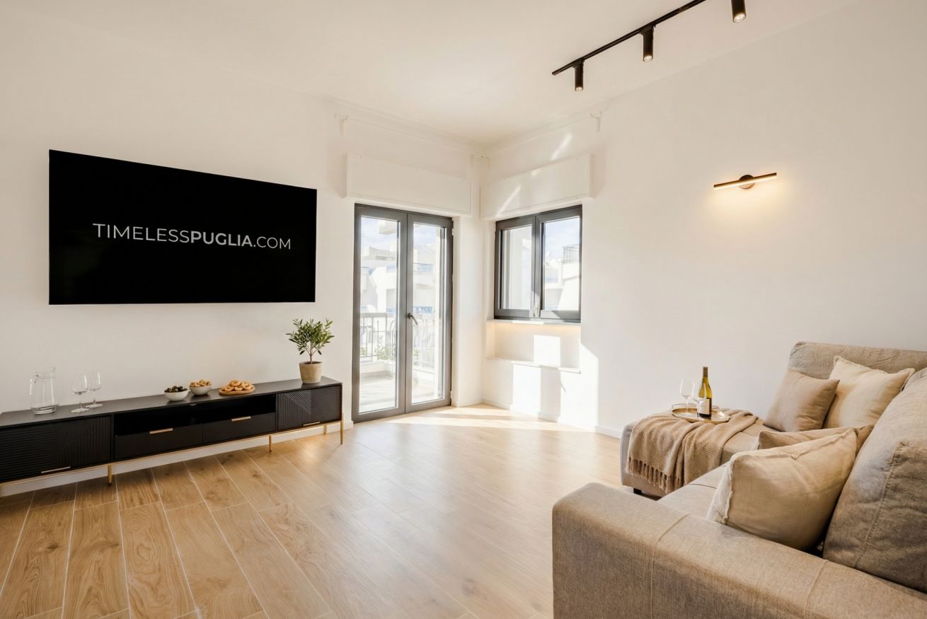Experience modern comfort in this bright, elegant apartment just 2 minutes from the sea and beaches. It features a spacious living room, fully equipped kitchen, two bedrooms, stylish bathrooms, and large windows with natural light. Enjoy the sea-view terrace, outdoor garden, and private parking on a gated driveway. Perfect for families or groups seeking comfort close to Bari’s main attractions.